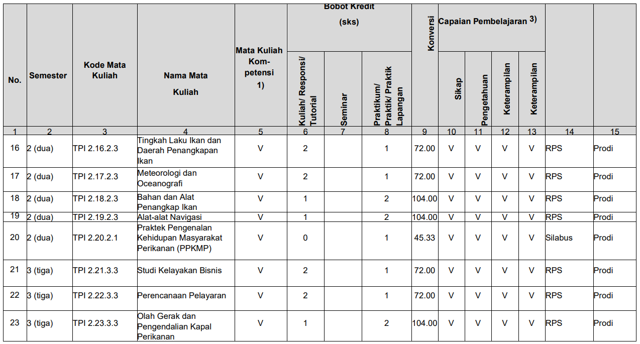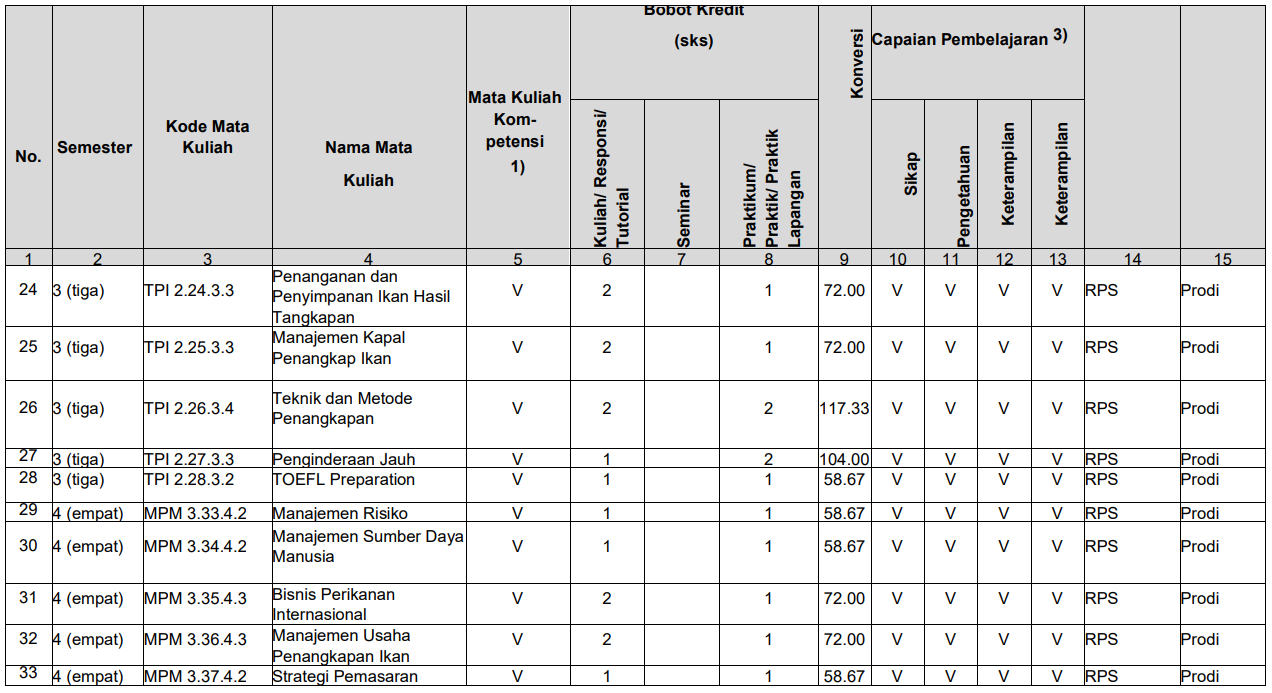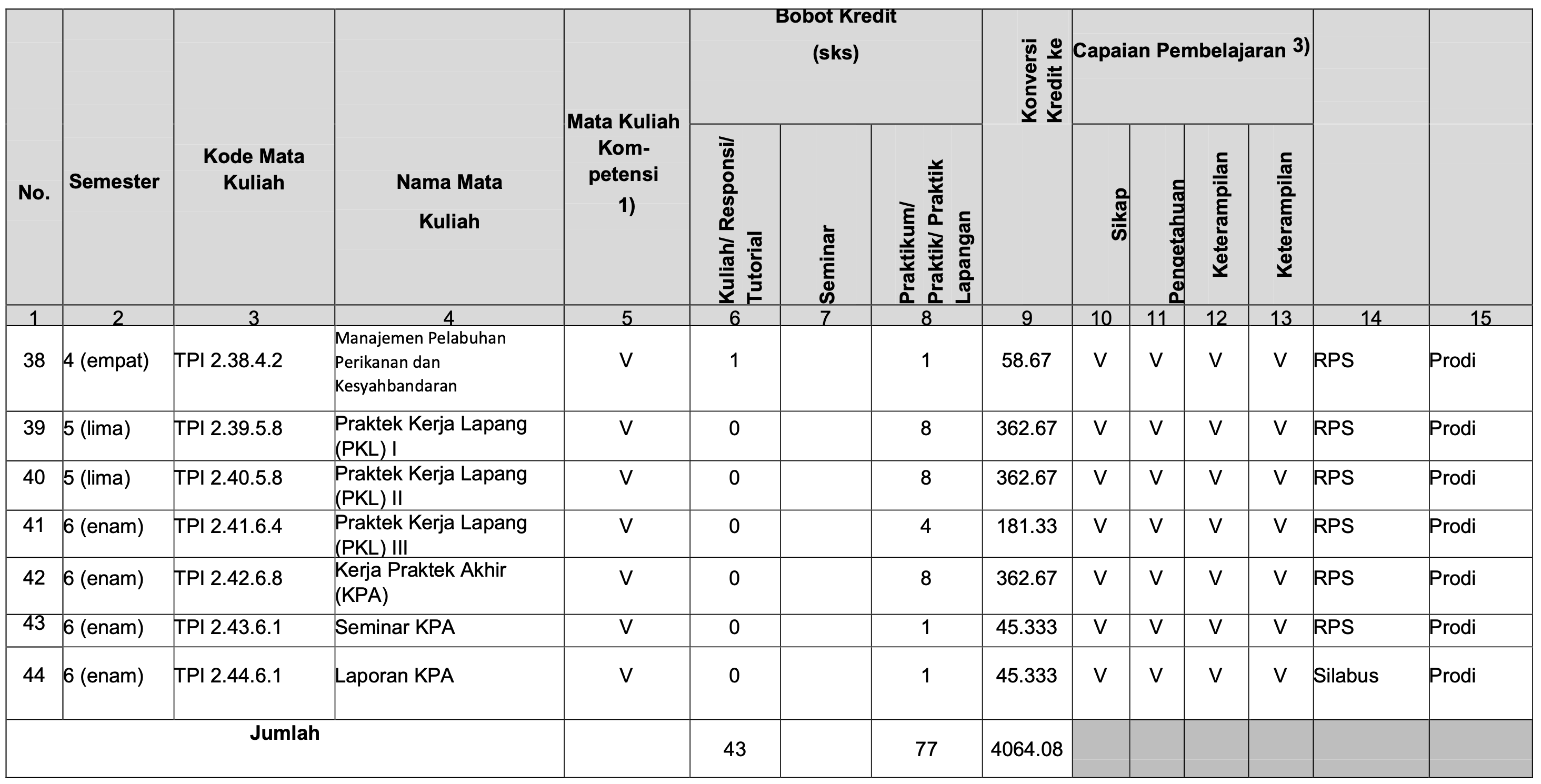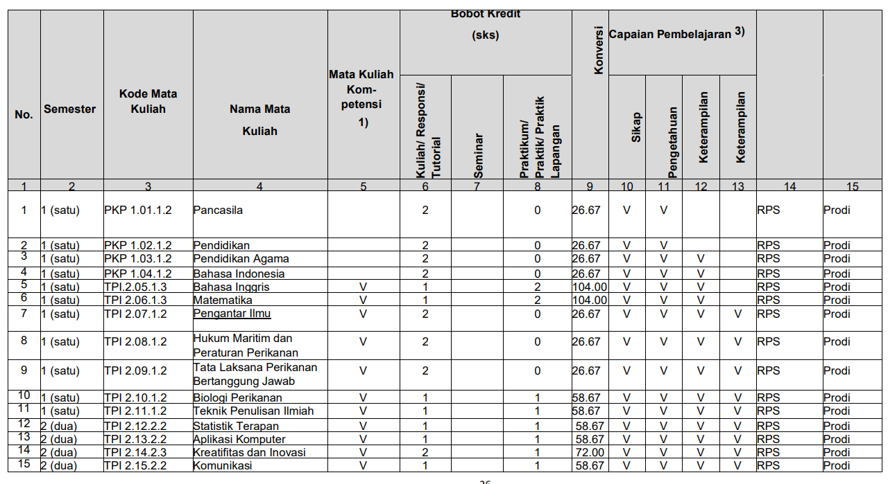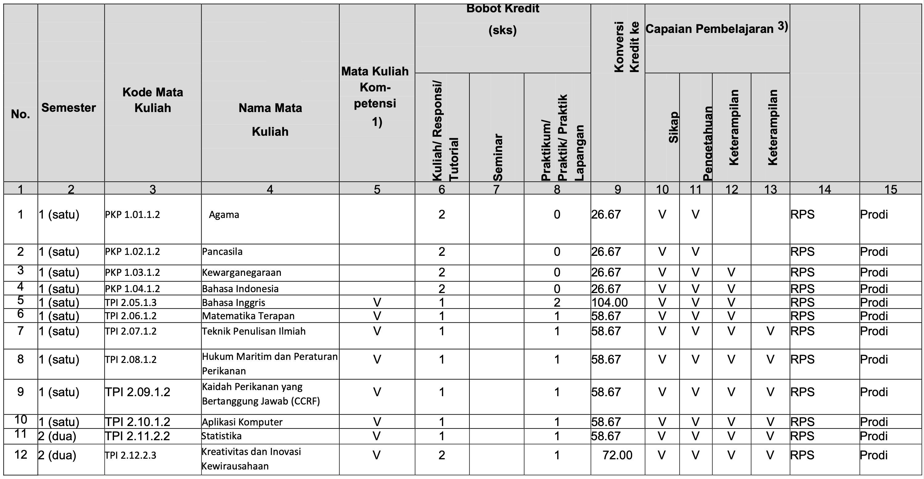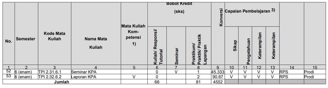 Struktur Kurikulum Prodi TPI