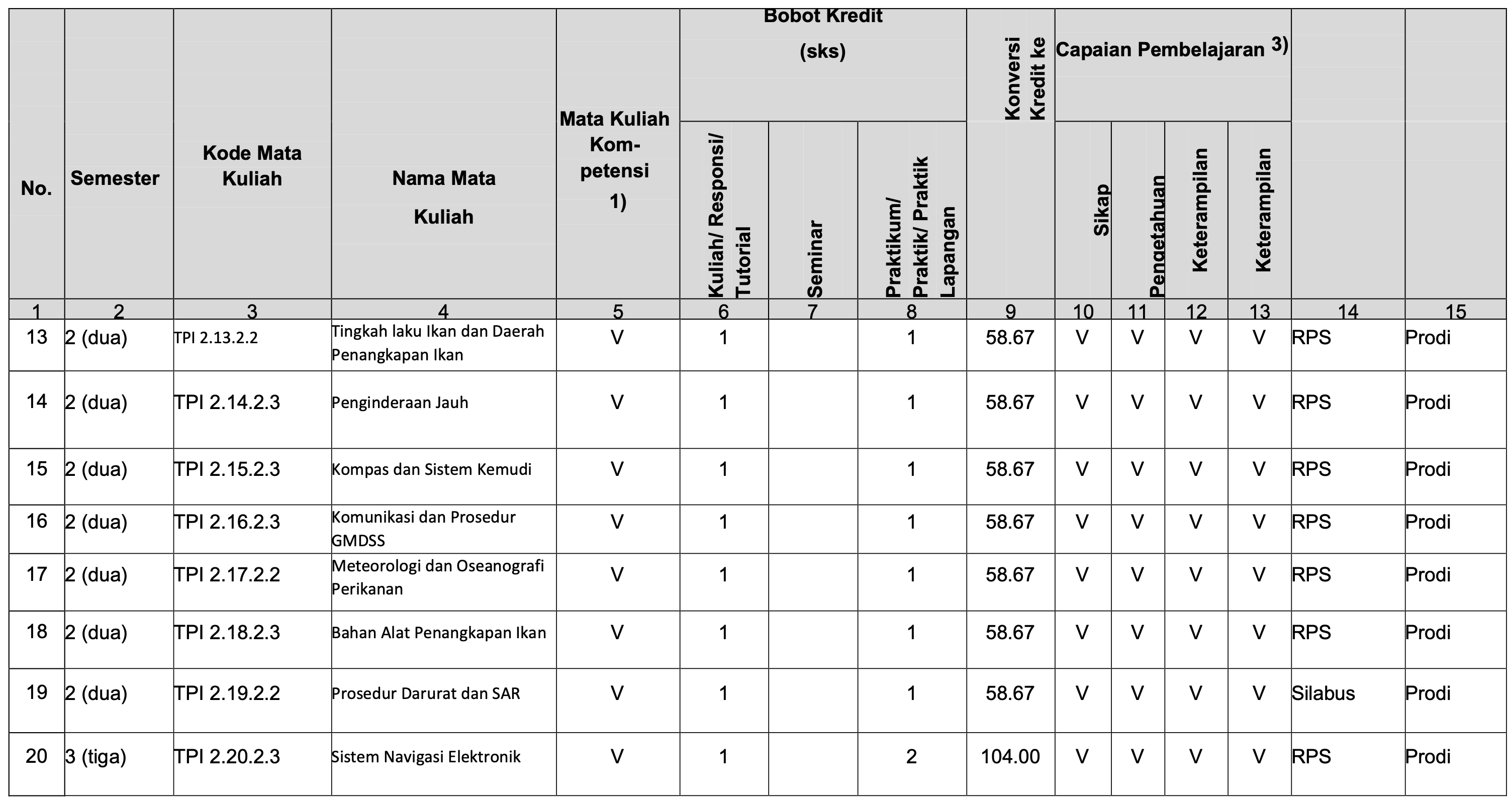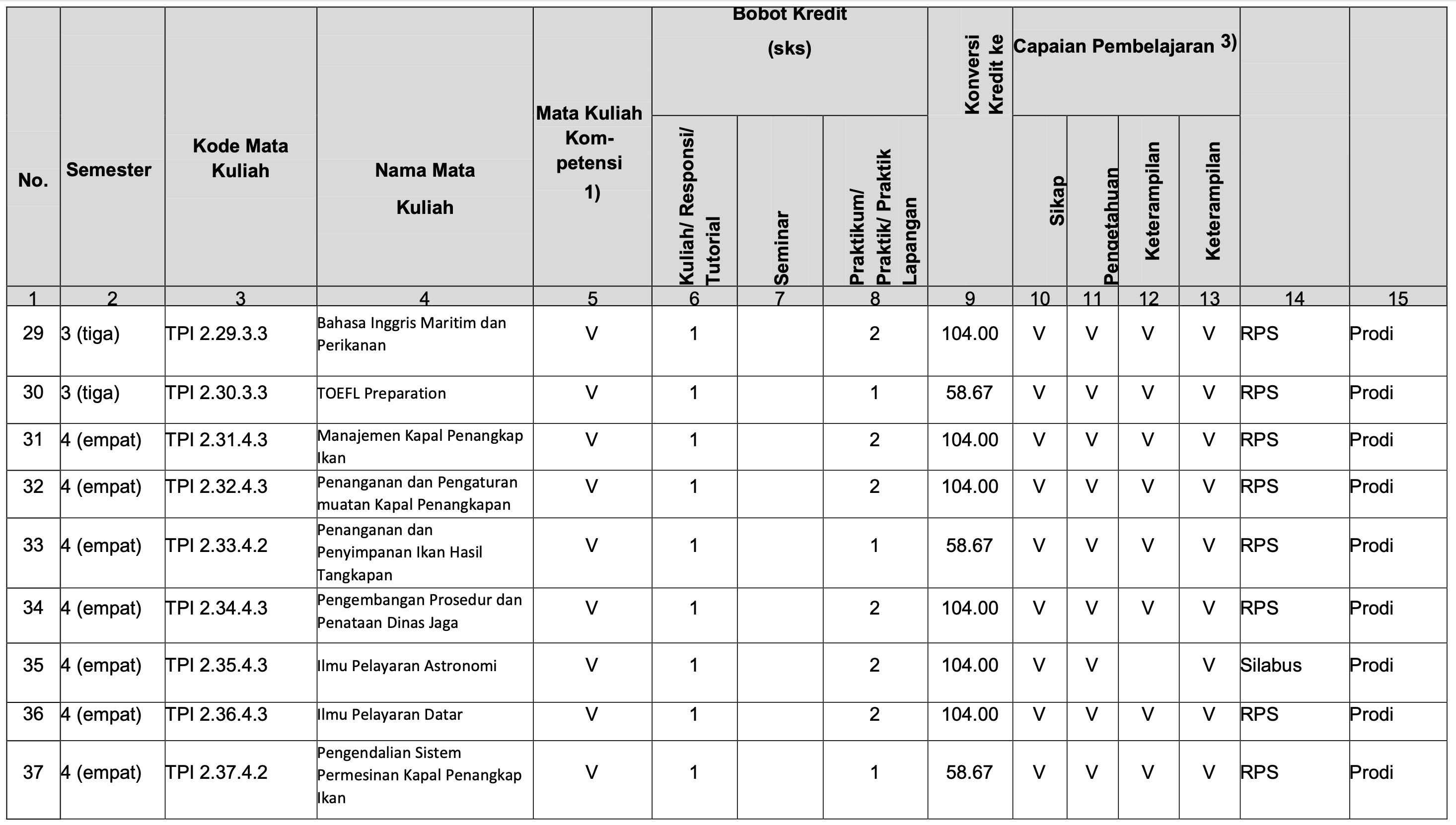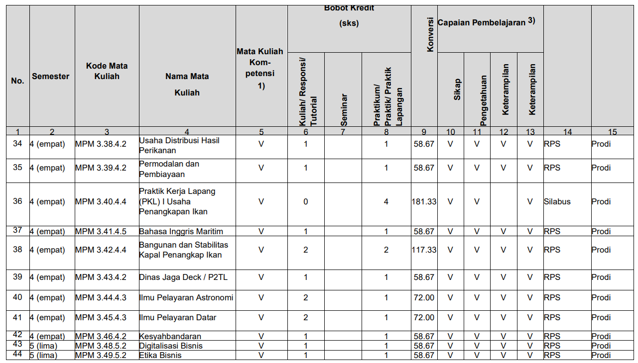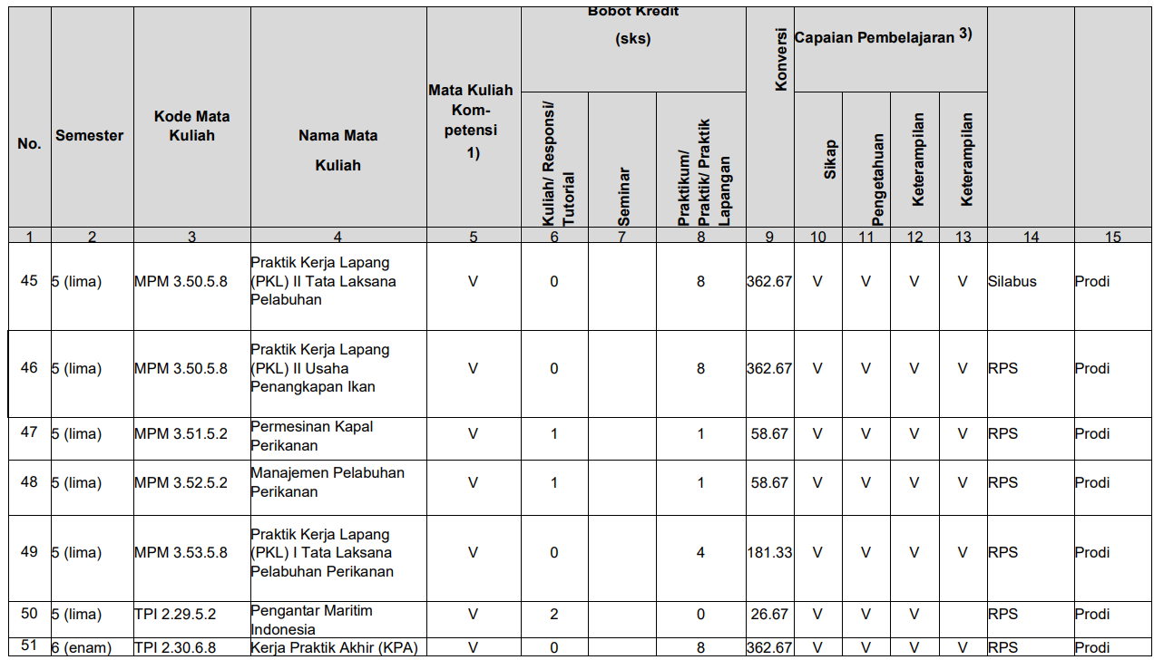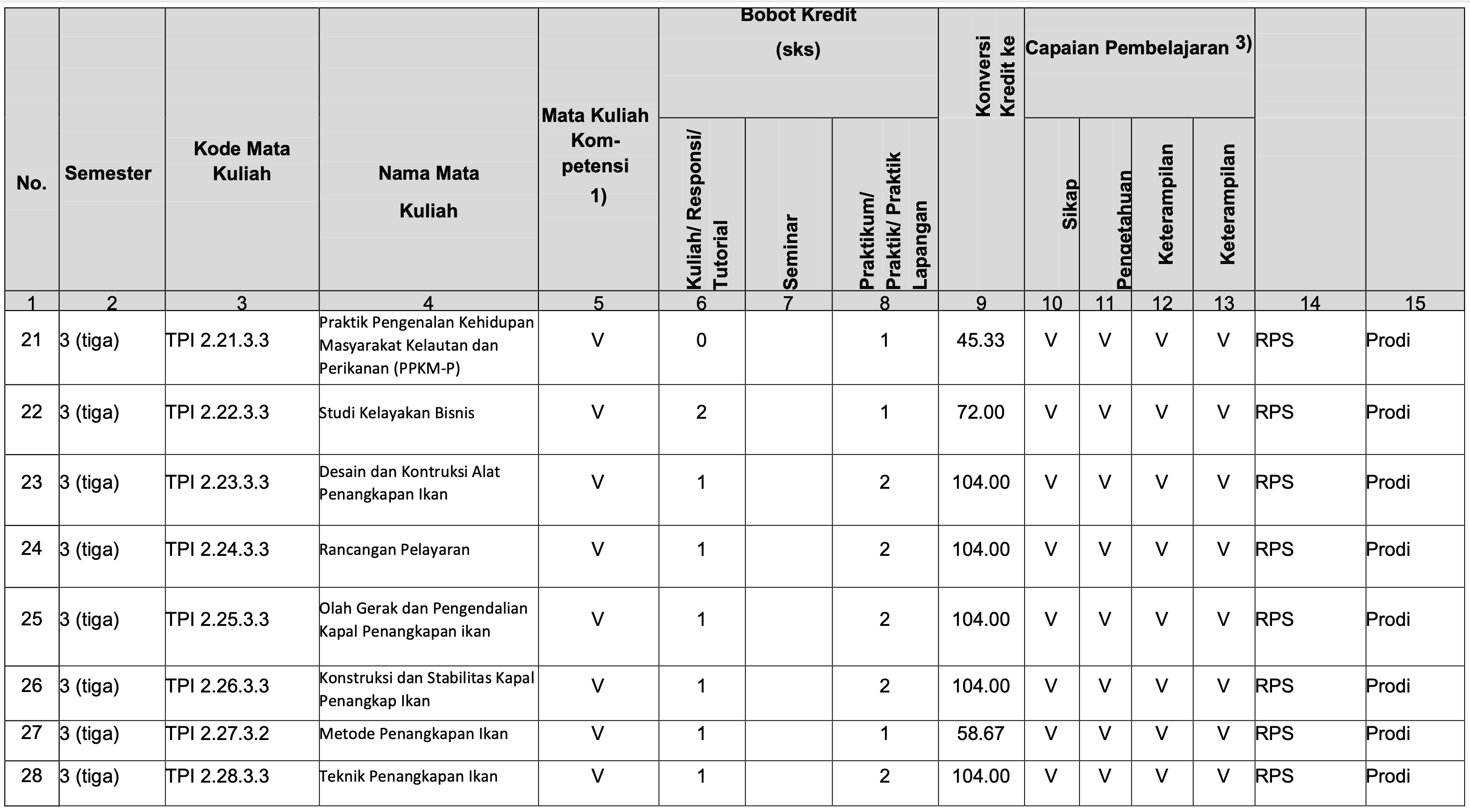 Struktur Kurikulum Prodi TPI